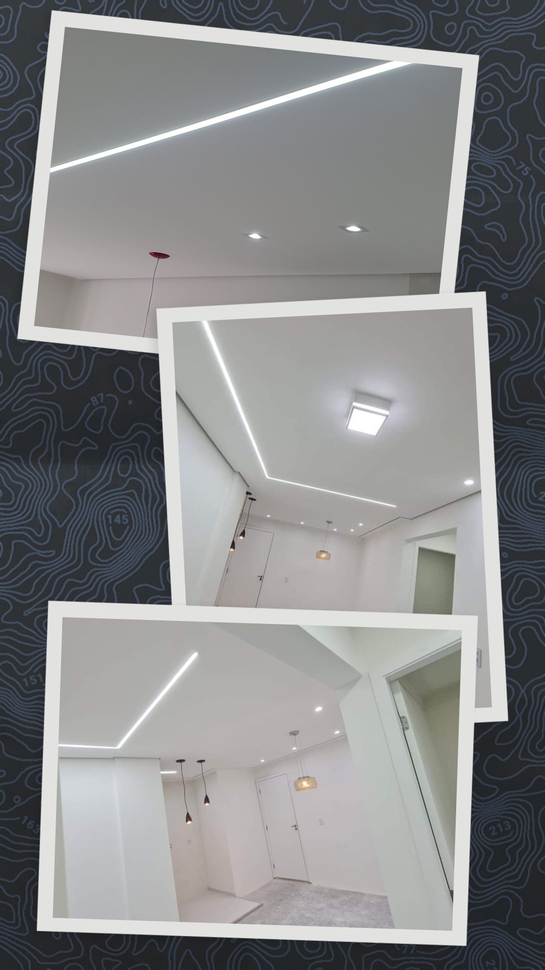 Gesso : Teto, divisórias, sancas, parede 3D - Pintura - Elétrica - Assentamento piso e revestimento