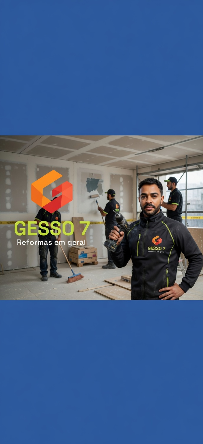Experiência em Reformas" Somos a Gesso7 Reformas, uma empresa especializada em trabalhos manuais e de construção. Atuamos na área de instalações de gesso, divisórias, sancas, pintura, elétrica e assentamento de pisos e revestimentos. Com uma vasta experiência no mercado, estamos localizados na cidade de Embu-SP e atendemos toda a região.